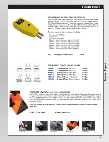 a variety of staples to reinforce and repair splits, cracks and rips in plastic materials.