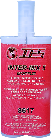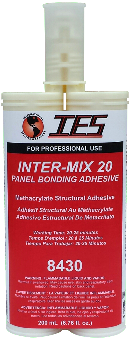 INTER-MIX 20 is a 1:1 methacrylate structural adhesive formulated to bond engineered thermoplastics, thermosets, composites and metal structural elements together in any combination. INTER-MIX 20 forms a tough, high-strength, high impact resistant bonds. It features a medium cure time for flexibility in positioning and multiple operations, but provides for faster fixturing. INTER-MIX 20 has outstanding durability and environmental resistance to most common industrial cleaners, fuels, lubricants and environmental conditions. This product is formulated as a non-sag, creamy gel to dispense through static mixer tubes and bulk dispensing equipment. Contains glass beads to prevent adhesive squeeze-out. Tremendous impact resistance.