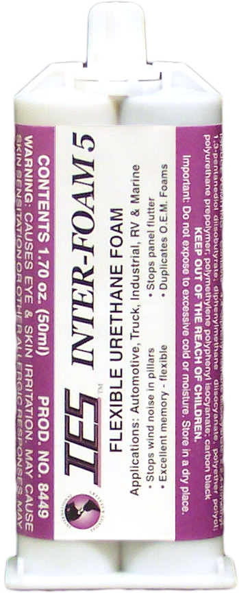 A two part flexible urethane foam formulated to expand up to 10 times its original volume. Used to stop wind noise and water leaks in pillar posts. Adds reinforcement to panels. Stops panel flutter. Provided sound deadening. Our automatic mixing system eliminates errors which are common in manual mixing. Dispenses with IES 50mL cartridge applicator gun #96204.