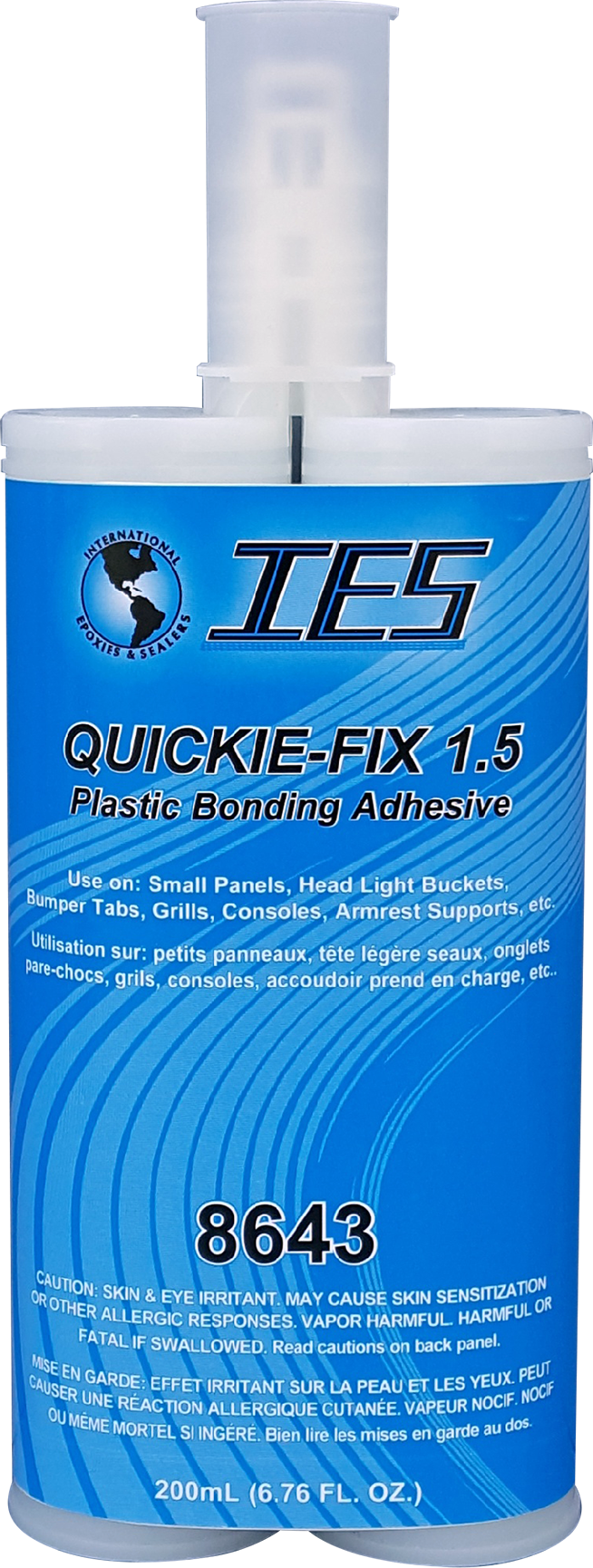 A fast-set plastic bonding adhesive used for bonding & repairing small panels, bumper tabs, headlamp buckets, header panels, etc. Use on small panels, bumper tabs, headlamp buckets, header panels, grills, consoles, arm rest supports, and much more! Our automatic mixing system eliminates errors which are common in manual mixing. Dispenses with any IES 200mL cartridge applicator gun.