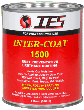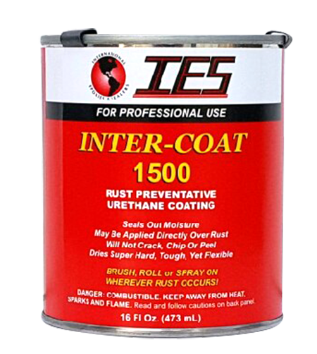 INTER-COAT 1500 is a rust preventive urethane coating formulated to apply directly on rusted metal, properly prepared bare metal, aluminum, galvanized steel, stainless steel, fiberglass and concrete. Drys to a hard, tough yet flexible non-porous finish. Will not crack, peel or chip. Permanently seals out moisture to prevent rust from occurring. Ferrous metal will not rust if you can keep moisture away from it. When used as directed INTER-COAT 1500 provides a non-porous barrier that encapsulates the surface to protect against moisture, chemicals and abrasion. INTER-COAT 1500 is UV sensitive. For applications directly exposed to ultraviolet light, INTERCOAT1500 should be topcoated with a UV protective coating.