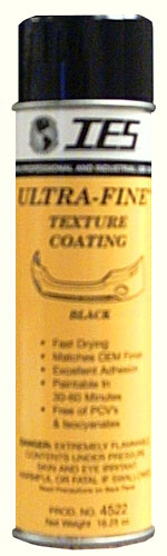 A fast-drying "ultra-fine" texture coating that has excellent adhesion. Blendable to a variety of both interior and exterior textures. Used on bumpers, step plates, mirrors, side mouldings, impact strips, dash/trim panels, etc. ULTRAFINE is not UV resistant and must be top coated. Matches OEM finish.