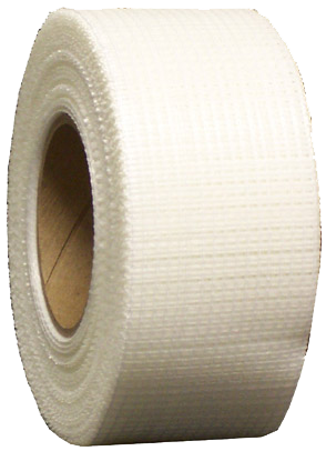 A fiberglass mesh tape with a high-tack adhesive on one side